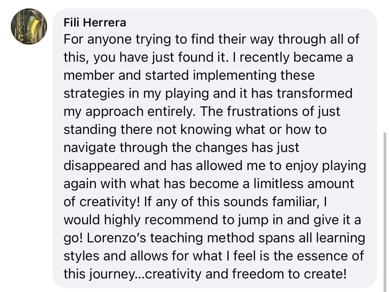 As the founder of ToneAlley Academy, Lorenzo has helped thousands of musicians worldwide develop their improvisation skills through courses, transcriptions, and hands-on exercises. His teaching focuses on real-world jazz vocabulary, phrase construction, and rhythmic mastery, giving musicians the tools to play with confidence and creativity.